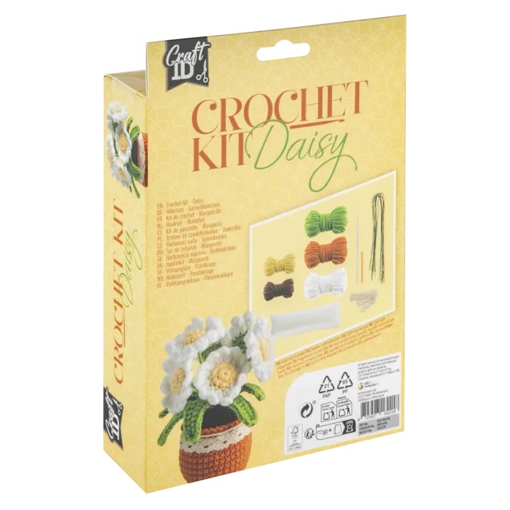 Descoperiți bucuria meșteșugului creativ cu Kitul de croșetat Flower Pot Daisy - un kit DIY frumos conceput care vă invită să aduceți la viață un buchet vesel de margarete croșetate, strâns într-un fermecător vas maro cu textură moale. Ideal atât pentru pasionații de meșteșuguri, cât și pentru cei care caută cadouri grijulii, acest kit all-in-one vine într-o cutie FC îngrijită (EAN 8715427162218) și conține tot ce aveți nevoie pentru a croșeta petalele albe delicate, centrele galbene însorite, frunzele verzi și baza robustă a ghiveciului - făcându-l minunat accesibil chiar și pentru începători. Odată finalizată, piesa dvs. confecționată manual va oferi un accent cald și artizanal pervazului ferestrei, scaunului capitonat sau colțului de bricolaj, iar motivul său de margarete însorite și tonurile naturale moi o fac să se potrivească perfect cu o gamă largă de stiluri de decor, de la minimalism scandinav la colțuri de țară confortabile. Fie că sunteți în căutarea unei sesiuni liniștitoare de bricolaj solo, a unui proiect comun relaxant sau a unui cadou unic făcut acasă, această trusă vă ajută să o luați încet, să realizați ceva frumos și să vă expuneți munca cu mândrie.