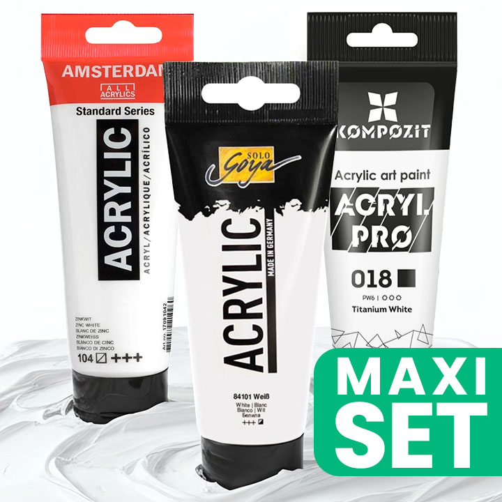 Introducere » Culori acrilice » Set avantajos de 3 vopsele albe acrilice
