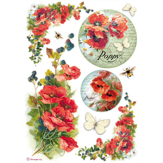 Introducere » Hobby » Decoupage-tehnica șervețelului » Șervețele și hârtie decoupage » Hârtie de orez A4 Stamperia - maci salbatici